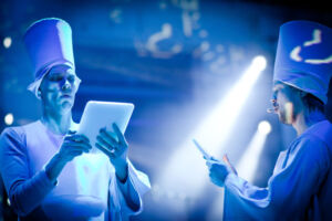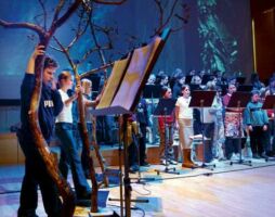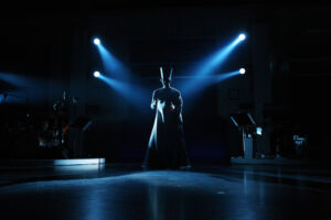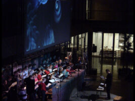Elektroninen orkesteri ja Tapiola Sinfonietta. Synkronoidut synteettiset soitinstemmat, audioefektit ja video sekä reaaliaikastreemaus. Robottikapellimestari.
